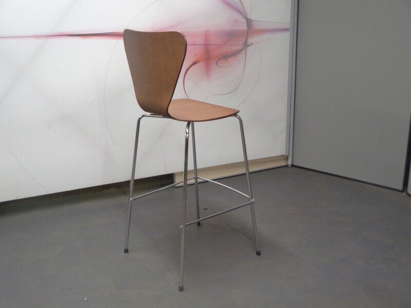Allermuir Dark Walnut and Chrome Bar Stool. A bar stool featuring a dark walnut seat with a chrome frame and integrated footrest.