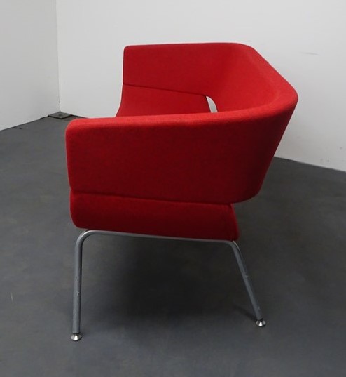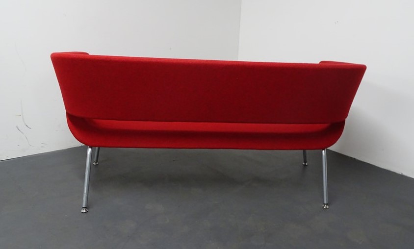 Allermuir Lola Red Sofa, upholstered in Camira Blazer red fleck fabric with a steel frame. Designed by Wolfgang C.R. Mezger.