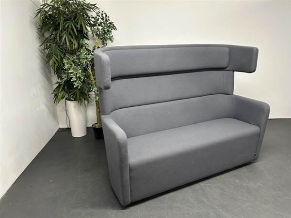 Bene Parcs Wing Grey Sofas create private seating zones. These high-back sofas feature dark grey robust upholstery and privacy-enhancing wings.