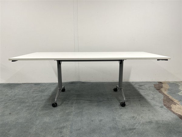 This white flip-top table provides a substantial workspace for larger group activities, measuring 2000 mm wide. It is ideal for executive boardrooms, large-scale presentations, and major training events. Integrated linking brackets facilitate the connection of multiple tables to create extended boardroom or conference configurations. The smooth flip mechanism allows the tabletop to be stored vertically, while lockable castors enable controlled movement, making it a versatile solution for multi-use spaces like corporate headquarters, convention facilities, and academic institutions.
