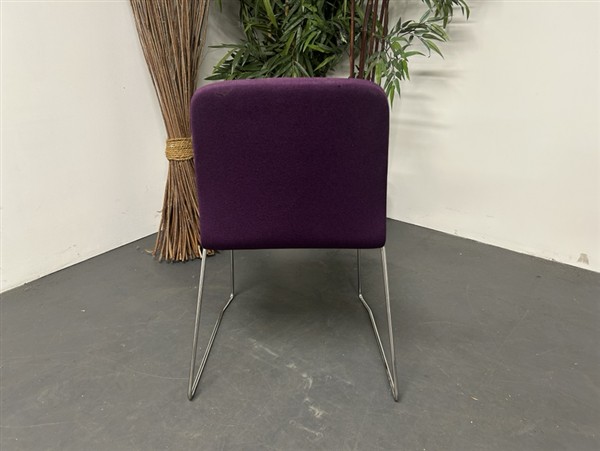 The LD Seating Sunrise chair is a versatile seating solution designed for a range of environments. It is suitable for use in corporate settings like breakout areas and meeting rooms, as well as in residential homes. This model features full purple upholstery and is supported by a durable chrome steel skid base. The chair’s stackable design allows for efficient, space-saving storage, making it a practical option for multi-purpose spaces.