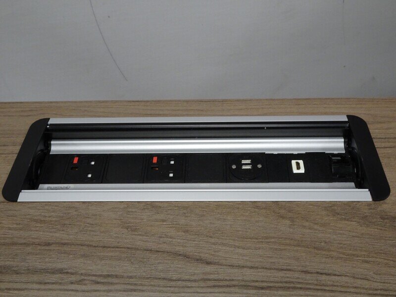 - Integrated rear access panel with 2 power points, 2 USB ports, and 1 ethernet port