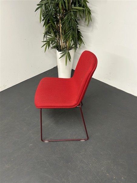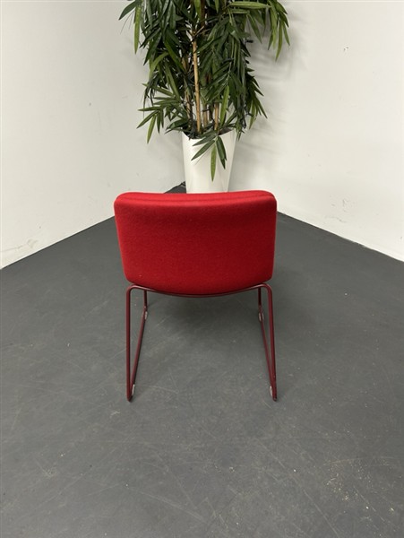 Orangebox Cubb 07 Red Chairs with upholstered moulded foam seats and matching solid steel wire sled bases. These contemporary chairs are stackable.