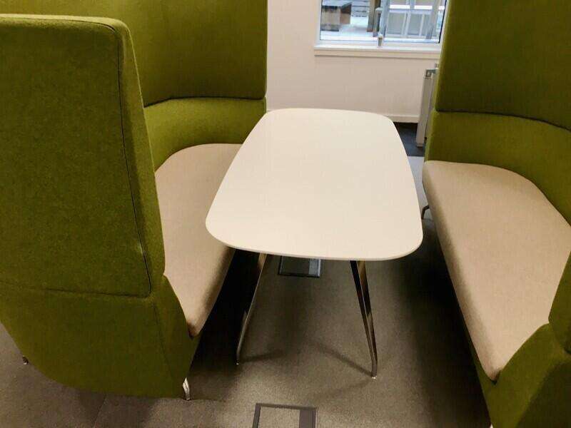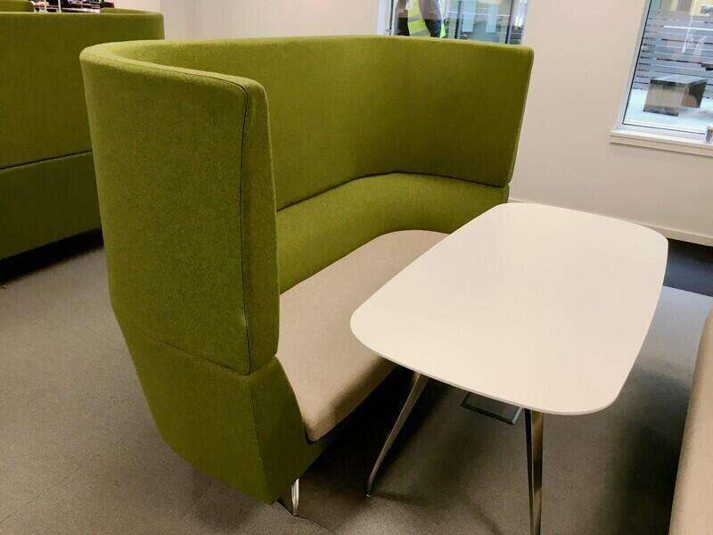 - Acoustic design with high back and sides for noise reduction and privacy.