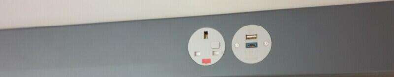 - Integrated power module with six standard plug sockets and six USB ports (three of each per side)