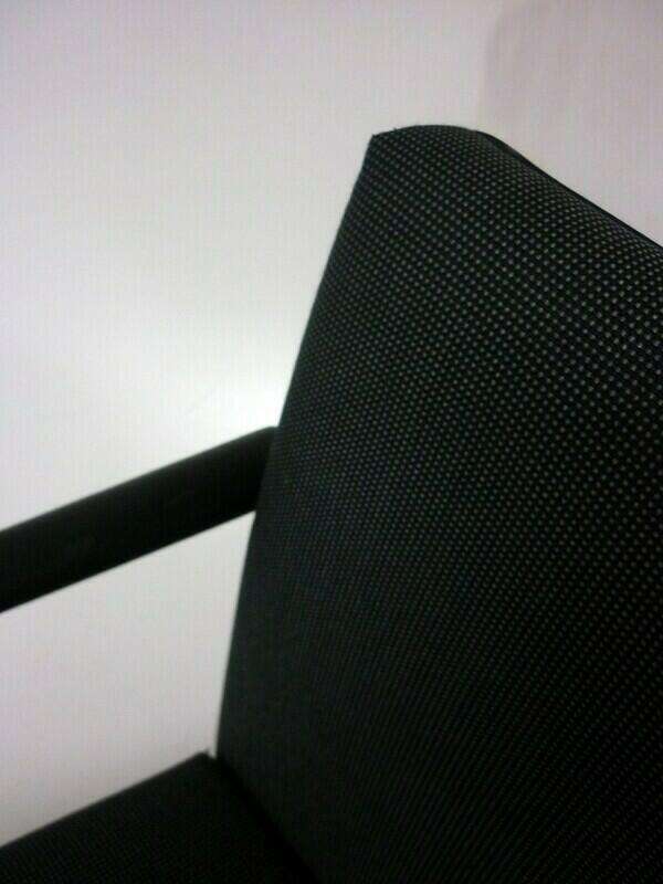 Vitra Visasoft Grey Meeting Chairs are stackable conference chairs with grey checked fabric, leather arms, and a chrome cantilever frame.