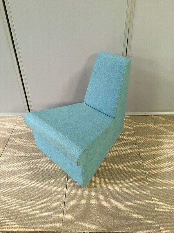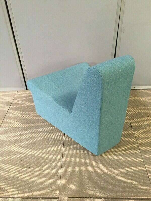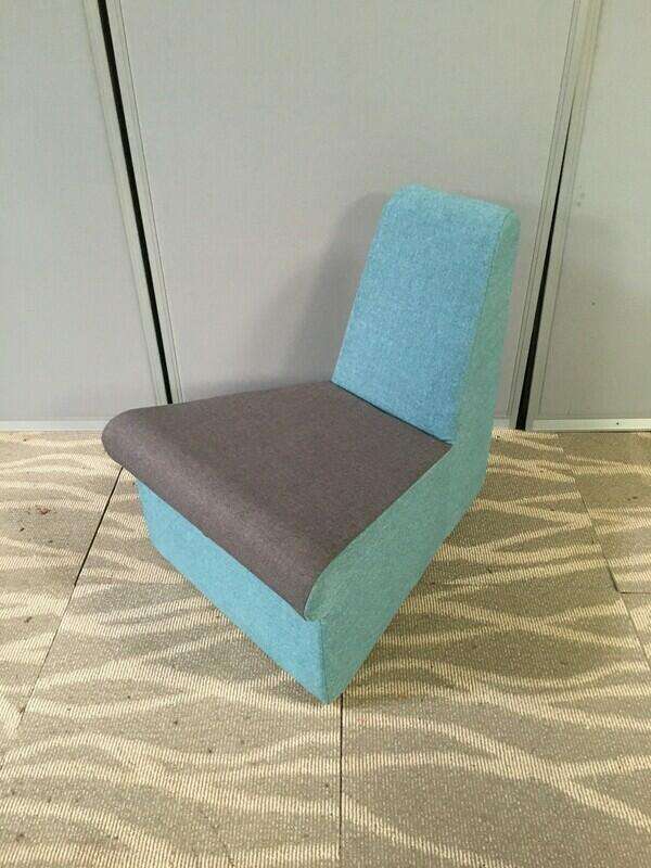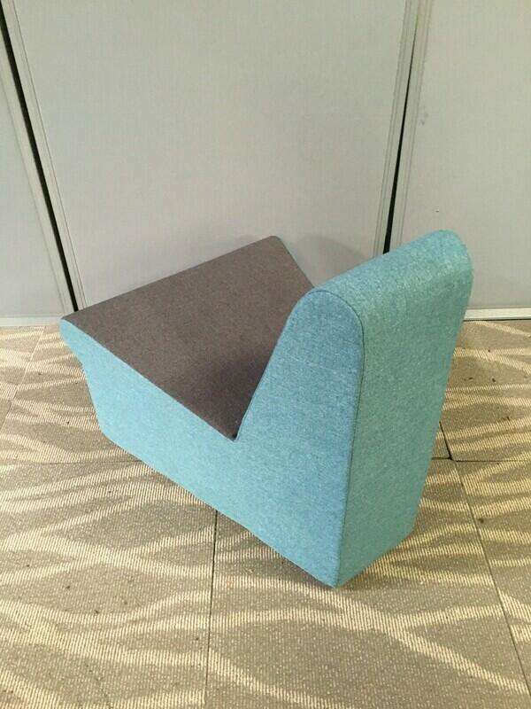 Light blue and grey wedge shape modular seating. Flexible furniture for modern seating areas. Available with grey seat facings or all light blue.